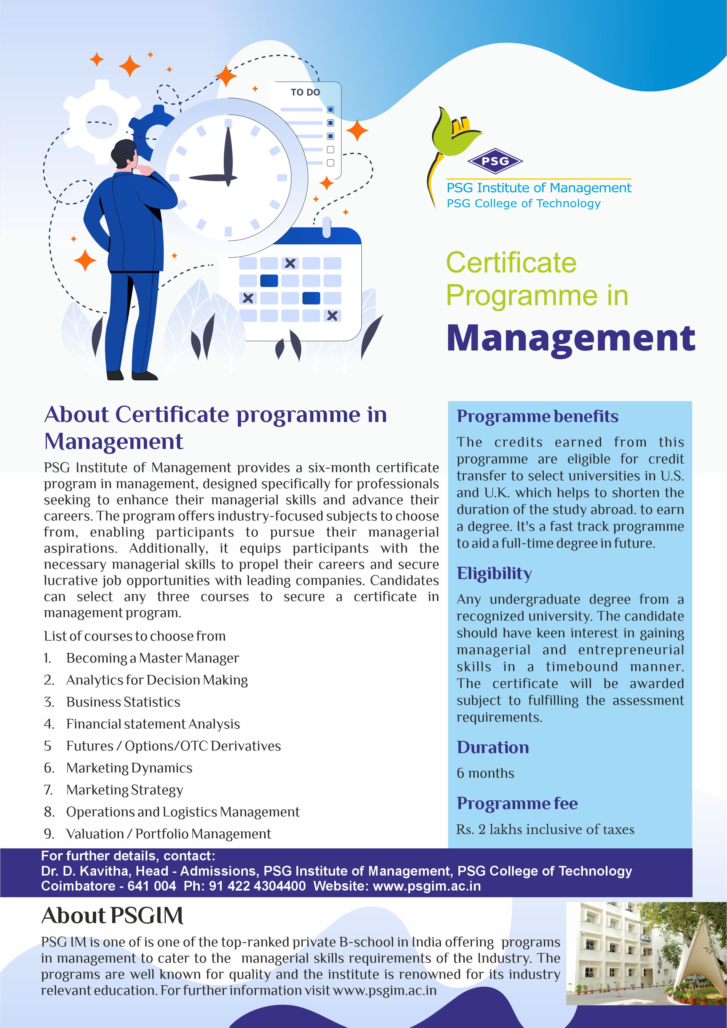 Contact our MDP Cell at mdpcell@psgim.ac.in or call +91 422 4304400 for program details.